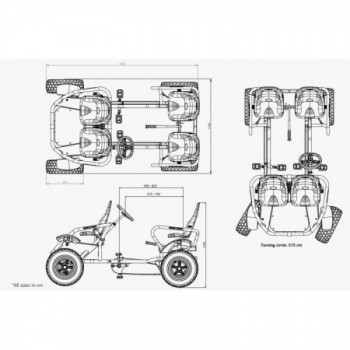 El Kart de Pedales Berg Gran Tour Off-Road tiene unas dimensiones de 185 cm de largo, 116 cm de ancho y 103,5 cm de alto, con un peso de 113 kg. Este renovado modelo presenta una dirección mejorada y un mantenimiento simplificado. El protector de la cadena es de fácil acceso y cambiar las ruedas es una tarea sencilla. Con su diseño totalmente actualizado, el Gran Tour es la elección ideal para experimentar momentos inolvidables en familia. ¡No dejes pasar la oportunidad de disfrutar de la diversión al aire libre con estilo y seguridad!
